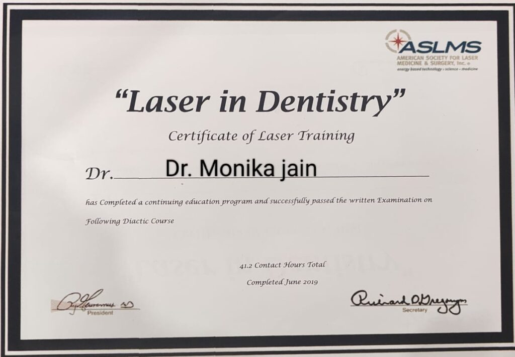 Dr. Monika Jain is a highly regarded dentist with over 10 years of experience, specializing in laser dentistry and providing specialized dental treatments to her patients. She is known for her expertise in various procedures including: